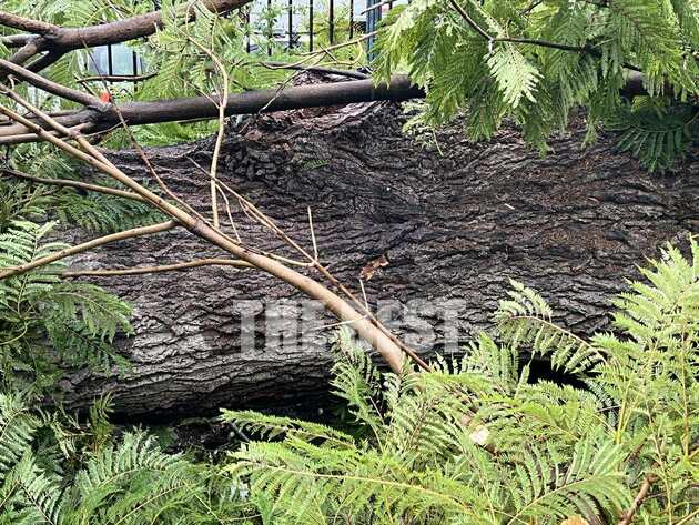 Περί τα δέκα δέντρα κατέρρευσαν ξαφνικά από τον αέρα (γίνεται λόγος περί ανεμοστρόβιλου), σαν να ήταν χάρτινα, σοκάροντας τους αυτόπτες μάρτυρες του πρωτοφανούς σκηνικού.
